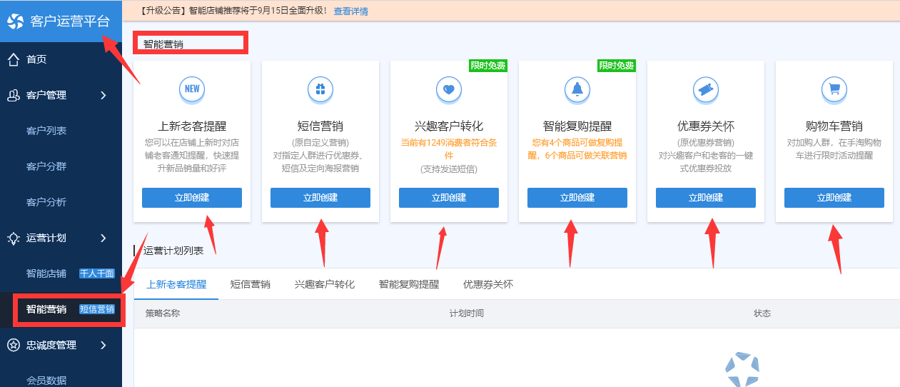 首先我们要借助官方工具,客户运营平台-智能营销。