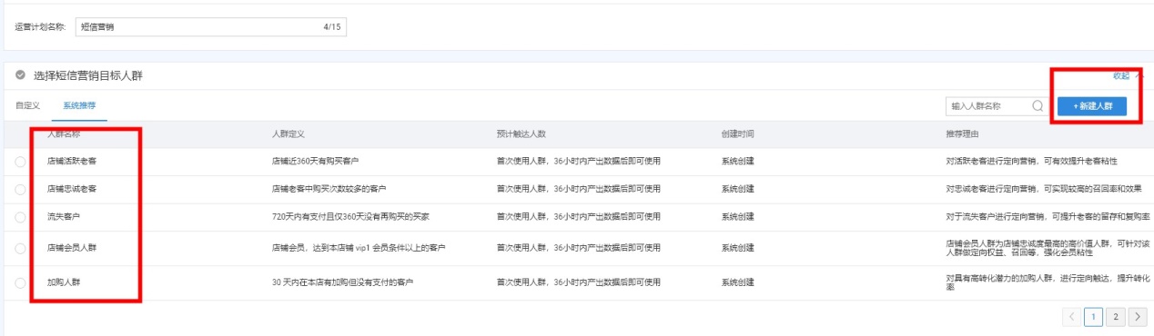 大家可以看到,这里有上新老客户提醒,短信营销,兴趣客户转化,智能复购提醒,优惠券关怀,购物车营销。