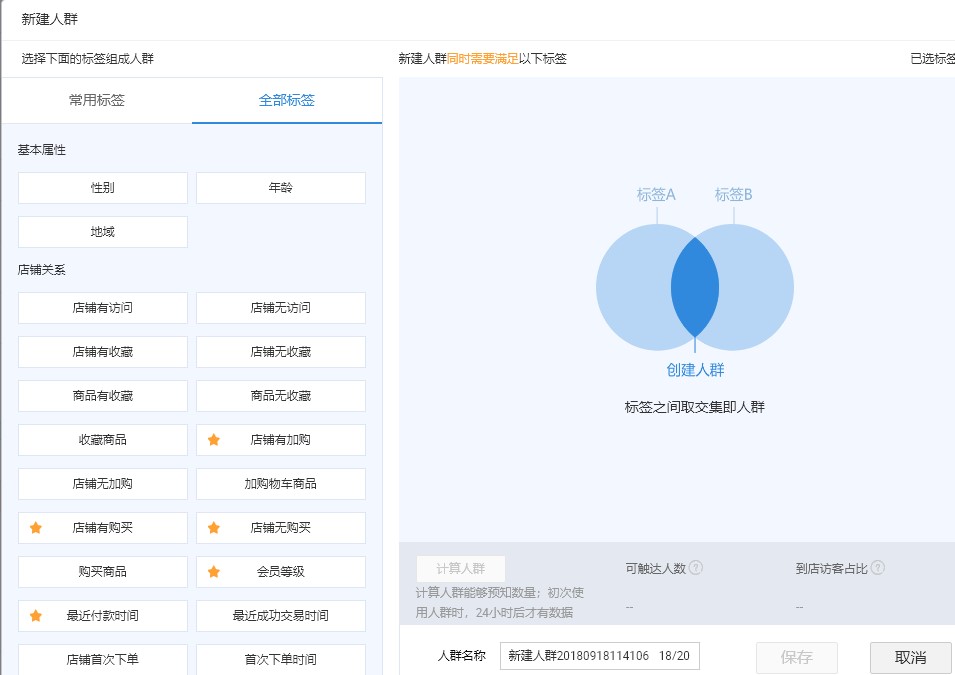 选择自己要投放的人群,右侧的新建人群也可以添加自己的目标人群标签.