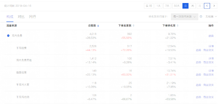 4.16号当天手淘搜索流量暴涨44%。