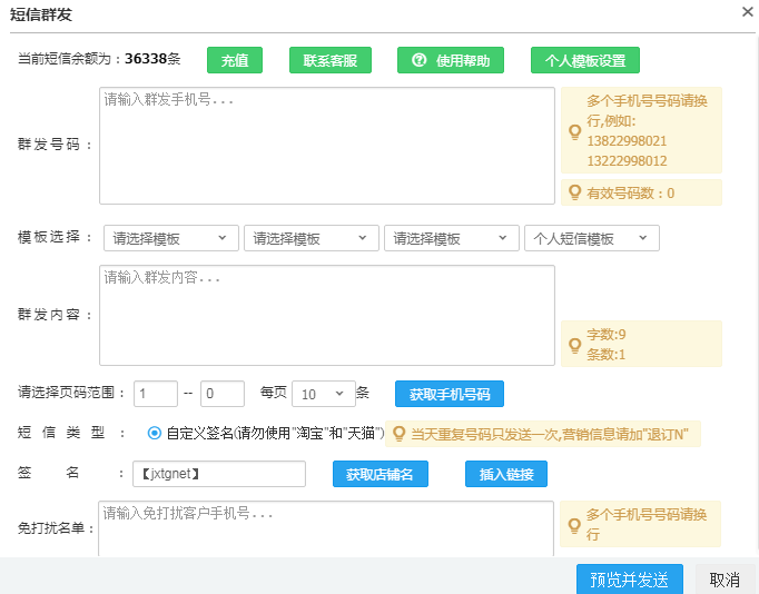 短信的营销方式可以在服务市场悟空交易后台-短信群发中进行设置。