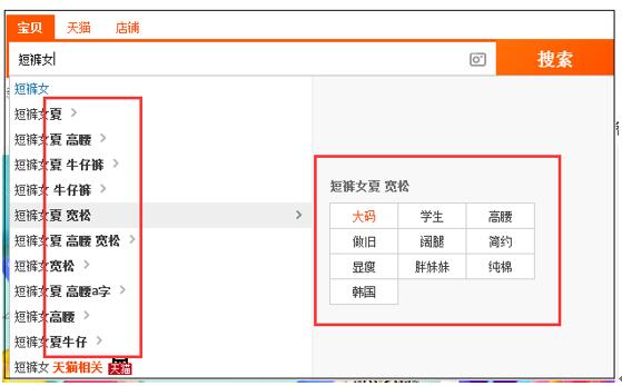 这里面,“短裤女”你就可以看成是一个产品词,也就是女款短裤,当然,如果你比较较真的话,你还可以说“短裤”是产品词,然后女也是起到修饰作用的属性词。然后其他的,比如说:高腰、牛仔、宽松、大码、学生、做旧、简约、显瘦、纯棉、胖妹妹等等,这些词都可以叫做修饰词。