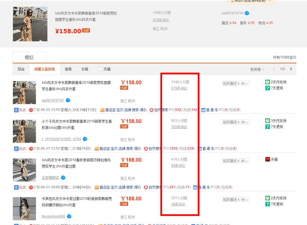如果同款很多都可以卖的动,或者销量还不错,说明是小爆款或者爆款潜质,如果同款太过于多,说明这款竞争很大,也不优先考虑。反之如果同款就只有一个可以卖得动的,也不优先考虑。